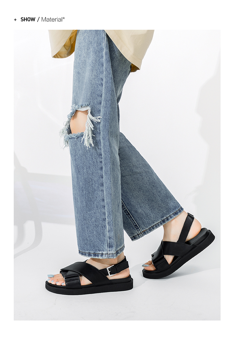 幅広のクロスストラップが足元をスタイリッシュに演出